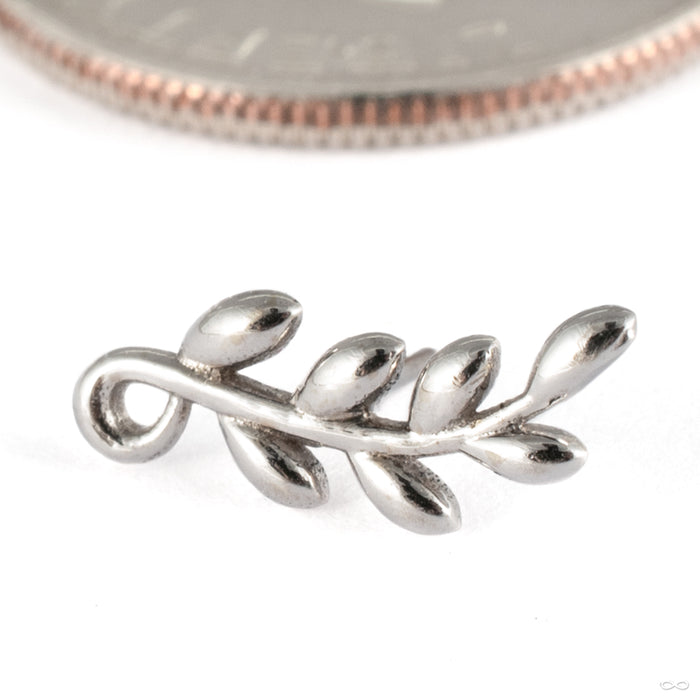 Solid gold leaves spring forth from a curved vine. Measures approximately 5mm by 11mm.