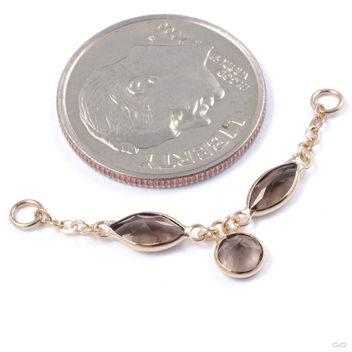 HialeahTwo arcs of solid-gold starburst chain are suspended between two jump rings, highlighted on one side by a tasseled charm featuring a 4mm by 6mm pea...