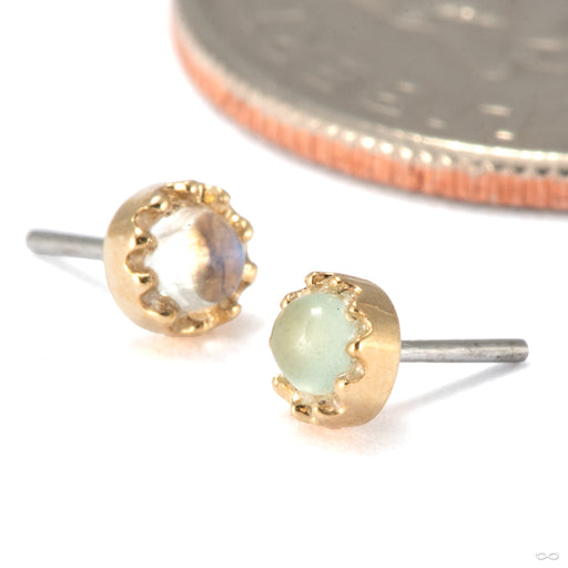 TawapaA luminous prong-set genuine stone cabochon accented at its base by a six-bead pyramid in solid gold. Small has a 2mm stone and measures 5mm overa...