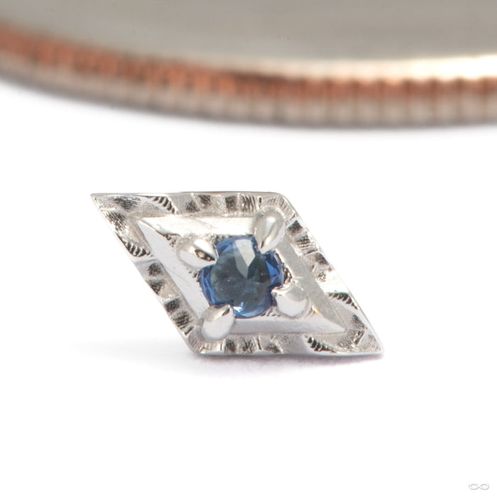 A textured diamond-shaped design is crowned with a 2mm prong-set genuine stone. Measures approximately 3mm by 6mm.