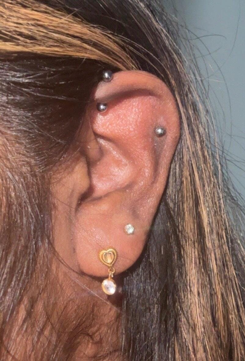 Press-fit jewelry is sold as two separate pieces: the decorative end is one piece, and the shaft and attached end is a second piece. If you need a complete piece of threadless jewelry, make sure to purchase a press-fit post for your end.